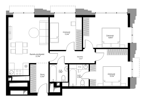 3 комнаты №3207