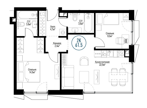 2 комнаты №721